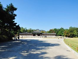 묘의 왼쪽에 있는 홍살문, 홍살문 안에 사당이 있습니다.