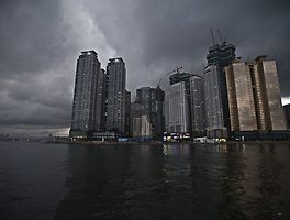 그래도 아쉬워, 뒤돌아 보며 몇 장의 사진을 남겼다. 하늘빛이 점점 어두워지고, 시꺼먼 뭉게구름이 낮게 드리웠다.