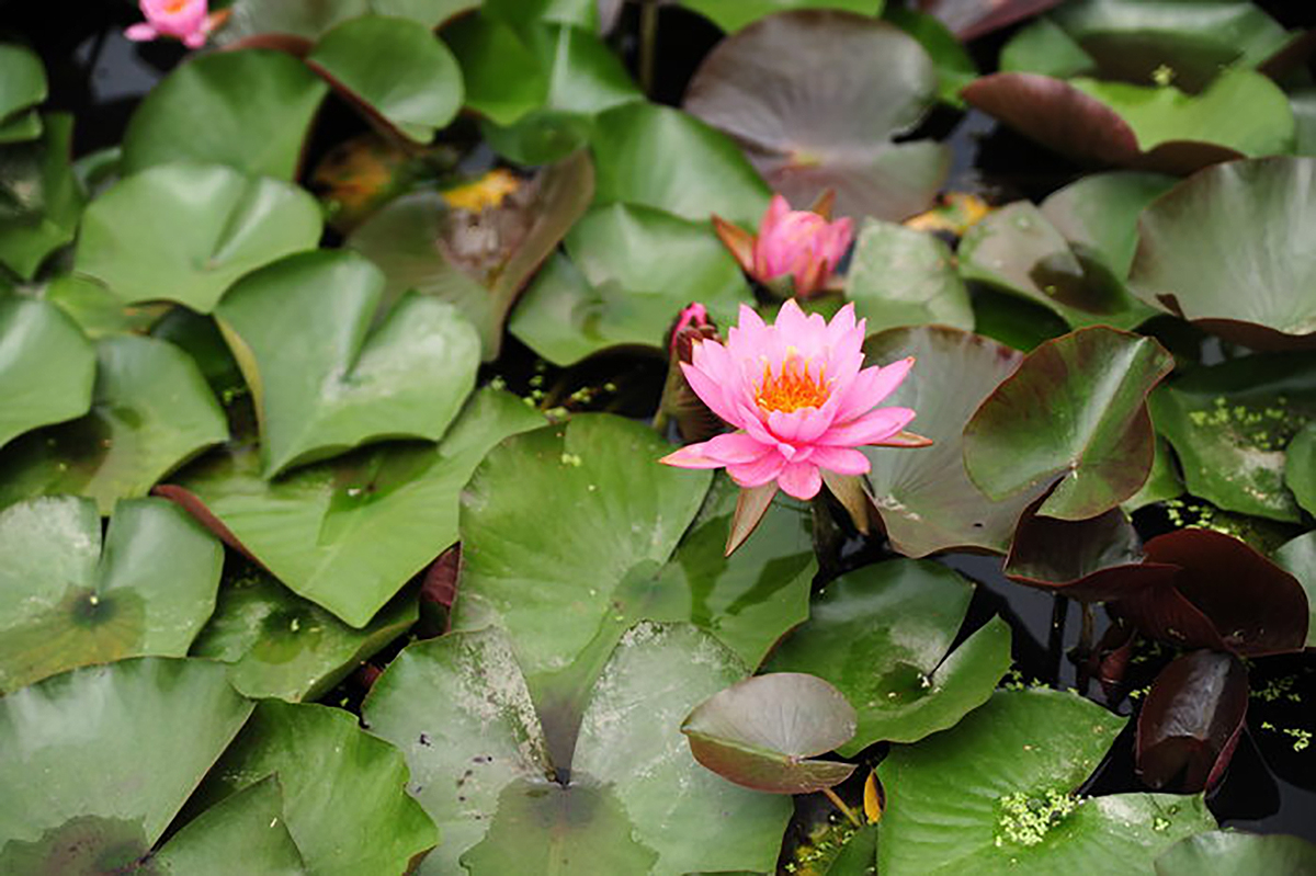 연꽃의 덕성은 첫째, 처렴상정이랍니다. 연꽃은 깨끗한 물에서는 살지 않습니다. 더럽고 추하게 보이는 물에 살지만, 그 더러움을 자신의 꽃이나 잎에는 묻히지 않는 답니다. 이것은 마치 불자가 흙탕물과 같은 세속의 더러움에 빠져 있어도, 세상의 더러움에 물들지 않고 오직 부처님의 가르침을 받들어 아름다운 자비심의 꽃을 피우는 것과 같답니다. 우리도 흔히 속세라고 말하는 세상을 맑고 향기롭게 하는 존재들이 되었으면 하는 바람이 있고요. 두 번 째는 화과동시랍니다. 화과동시는 꽃과 열매가 동시에 맺힌다는 의미입니다. 보통의 식물들은 꽃이 지고 나서 열매가 맺히지요. 연꽃은 꽃이 핌과 동시에 열매가 그 속에 자리를 잡습니다. 이것을 '연밥'이라 하는데, 즉 꽃은 열매를 맺기 위한 수단이며 열매의 원인인 것이랍니다. 그런데, 세상사의 이치는 원인에 따라 결과가 생기게 마련인데, 연꽃은 원인과 결과가 동시에 진행되는 것이지요. 원인이 결과를 만들고, 결과가 다시 원인을 만든다는 것입니다. 그래서 이를 인과동시라고도 합니다. 이 꽃과 열매의 관계를 인(因)과 과(果)의 관계라 할 수 있으며 인과의 도리는 곧 부처님의 가르침이랍니다.