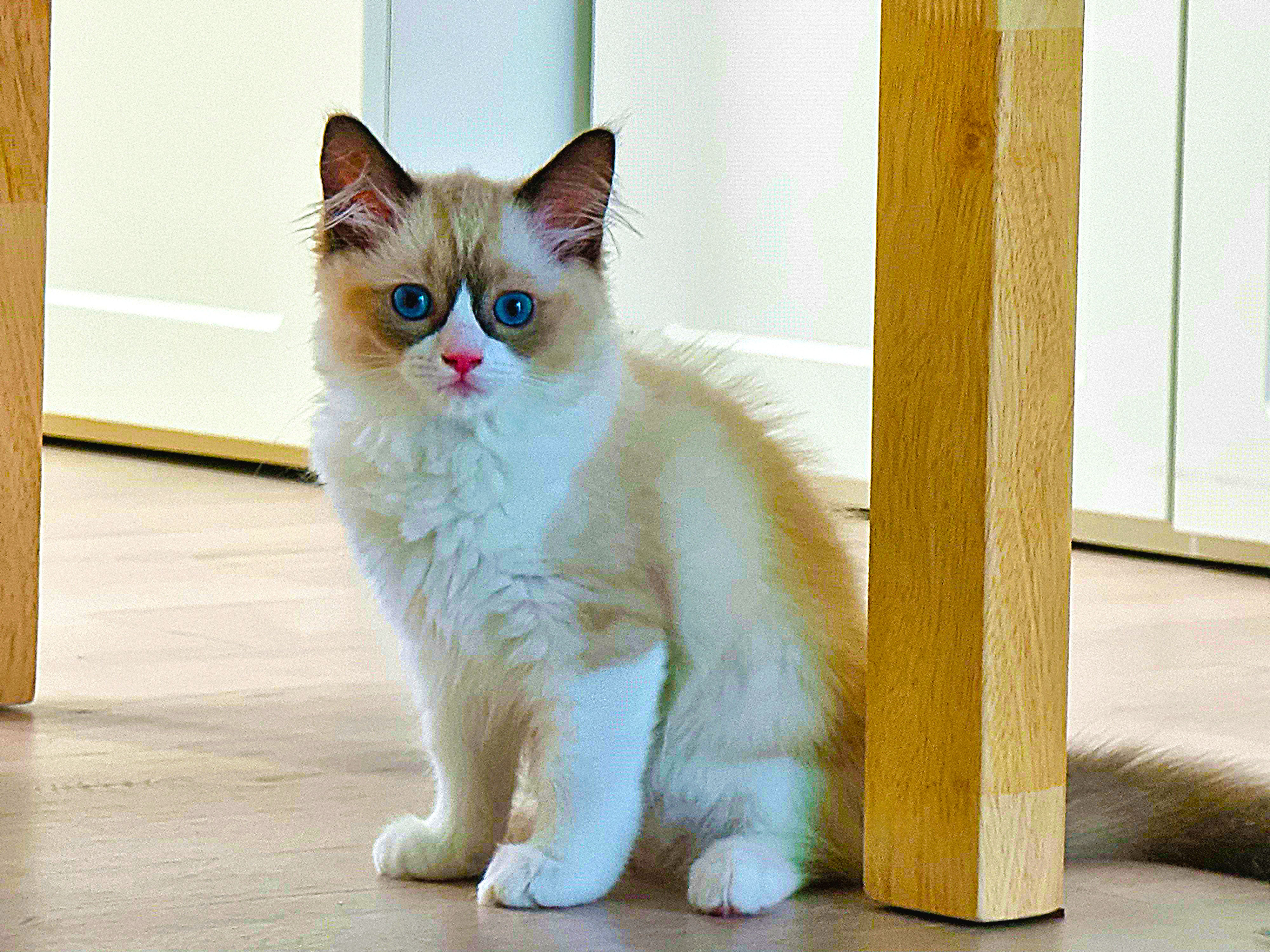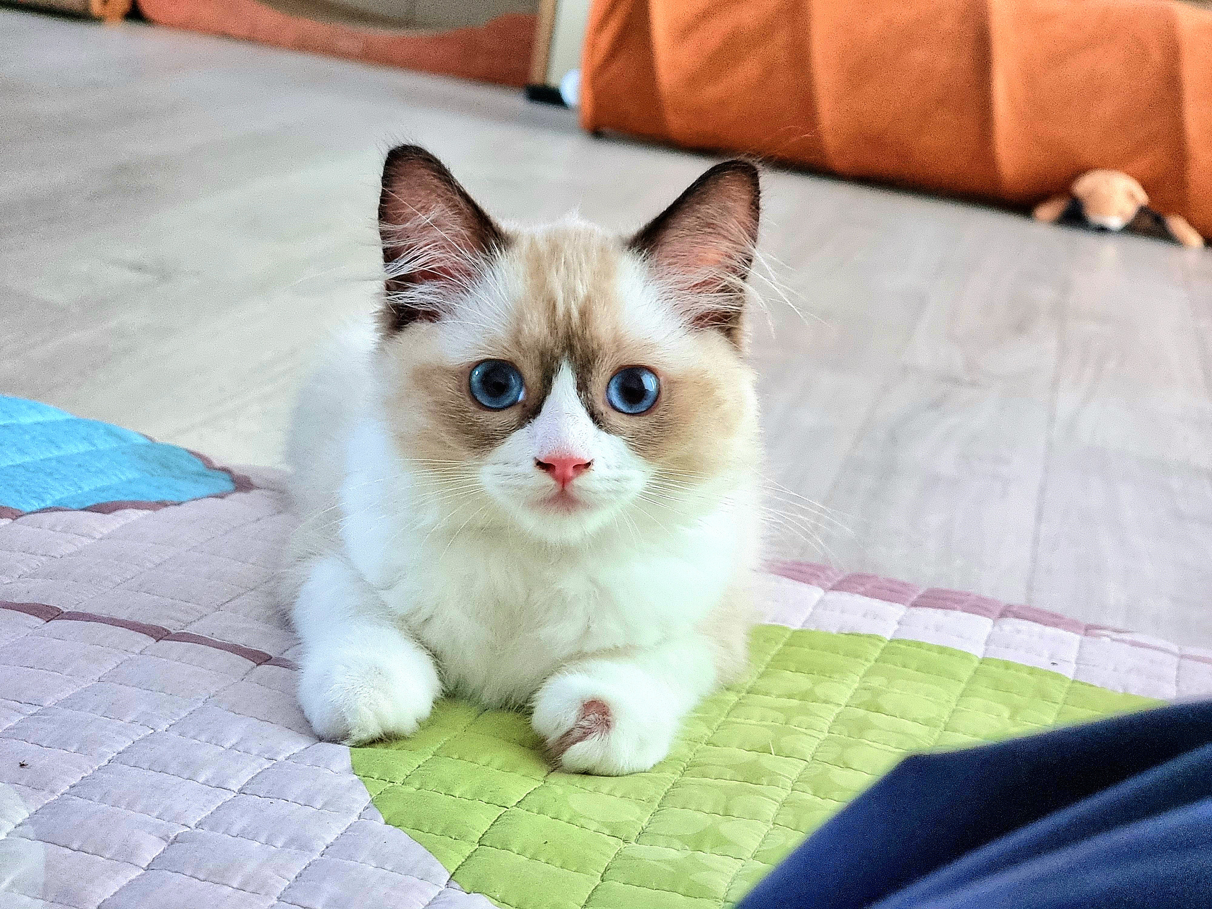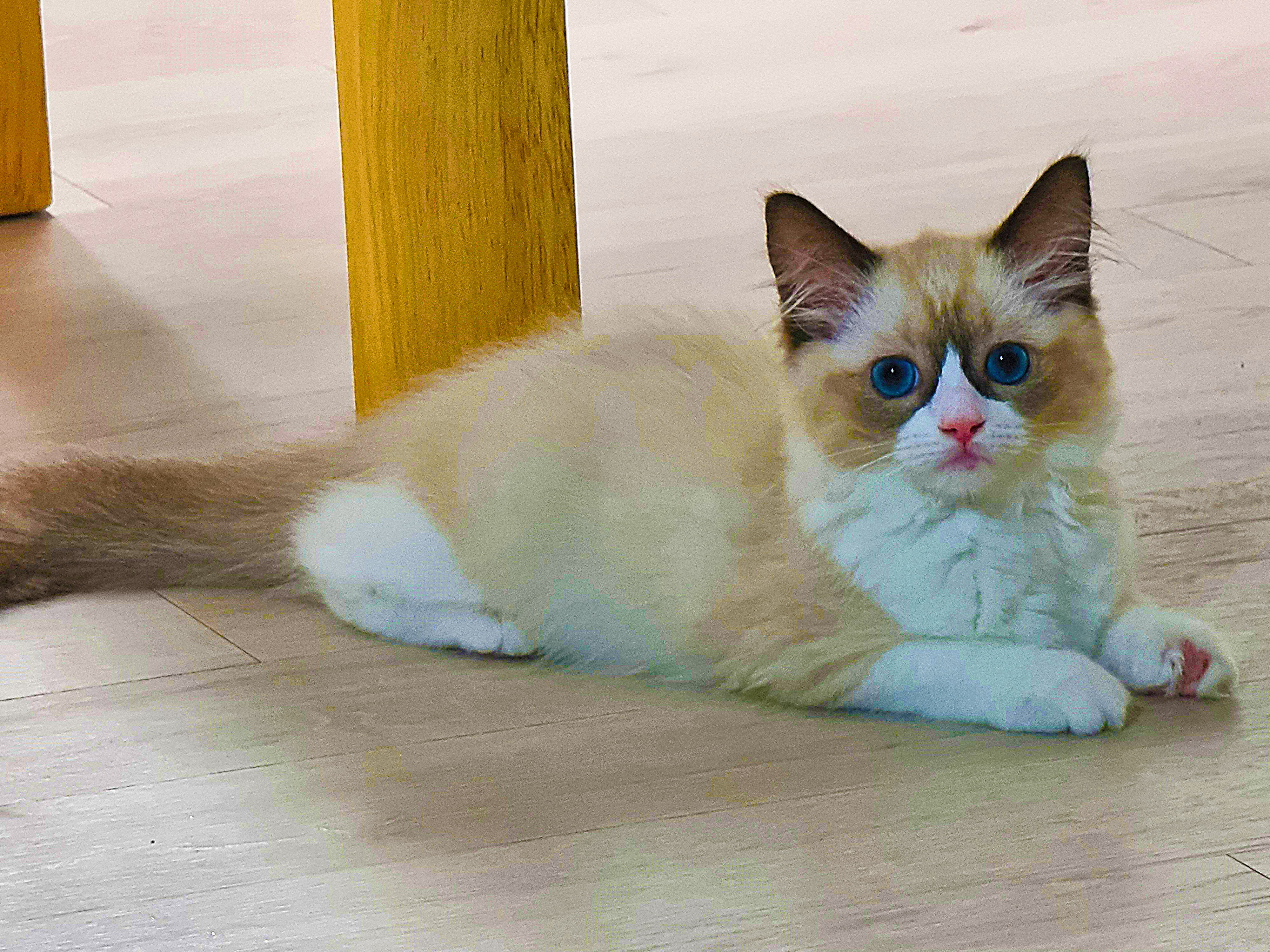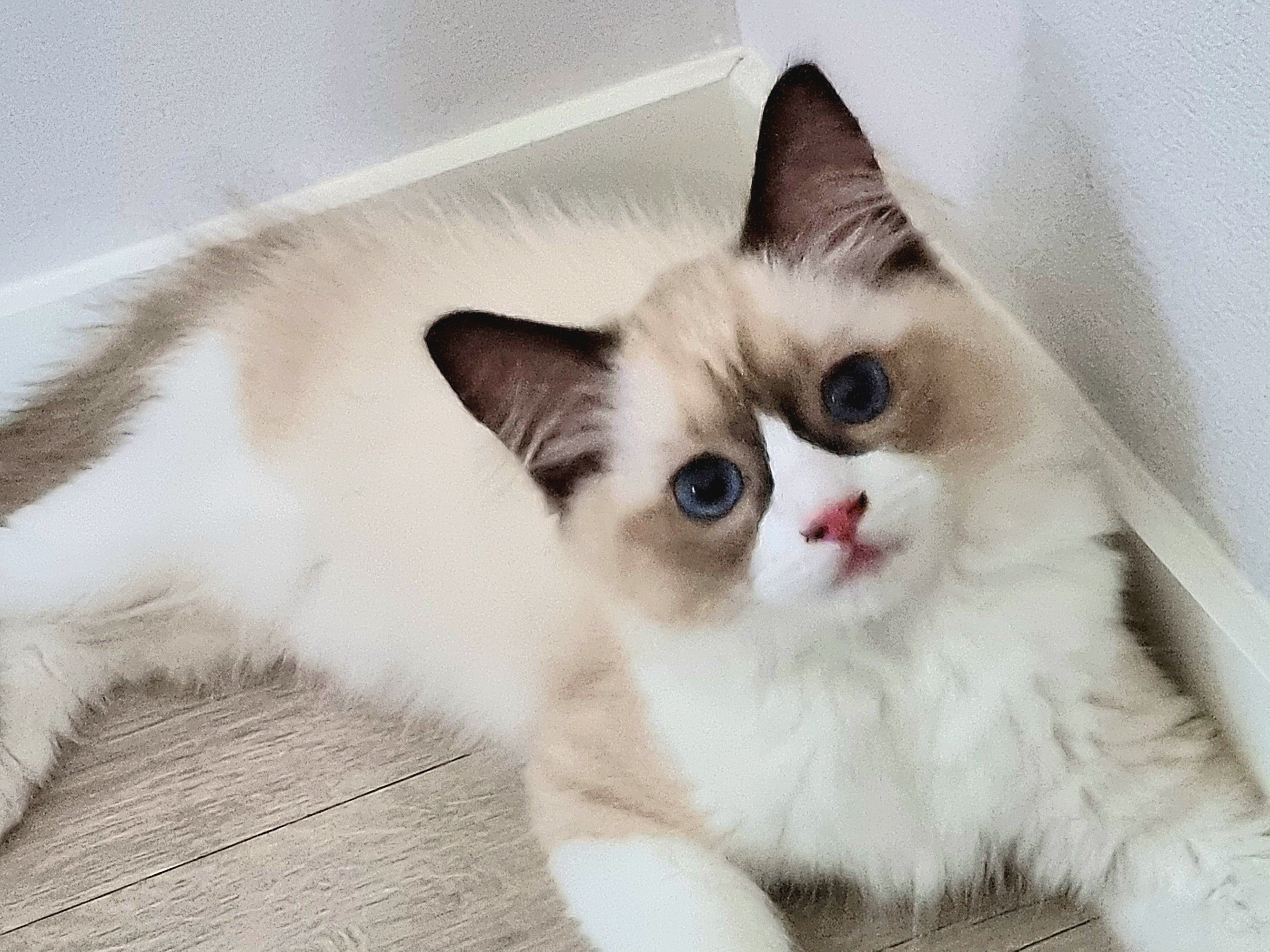 파란 눈의 고양이, 미국에서 개량한 품종 '렉돌'이다. 덩치가 커서 비만 고양이에 속하지만 성품이 유순하고 친화적이란다. 집에 들여온 녀석은 어린 탓인지 생기 발랄했다. 조석으로 까불고 사냥하듯 숨었다가 뛰어나와 장난감을 공격한다. 사냥본능이 뛰어나지만 호기심 많고 천진난만하다. 아직 한 번도 야옹하는 울음소리를 낸 적이 없다, 핸드폰으로 새끼 고양이 울음소리를 여러 번 들려줬는데, 관심이 대단했다. 자주 들려주면 야옹거릴까봐 그만 두었다. 시력은 좋지 않은 듯, 정지된 먹잇감은 잘 찾지 못하지만 동체 시각과 청각은 매우 예민하게 발달했다. 점프력도 좋고 대단한 몸놀림으로 거실을 제 영역으로 인식하고 좁다는 듯 뛰어다닌다. 한낮에는 어두운 구석을 찾아 숨어서 오붓하게 낮잠을 자며 제 방식의 삶을 즐기고 있다.
