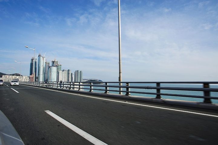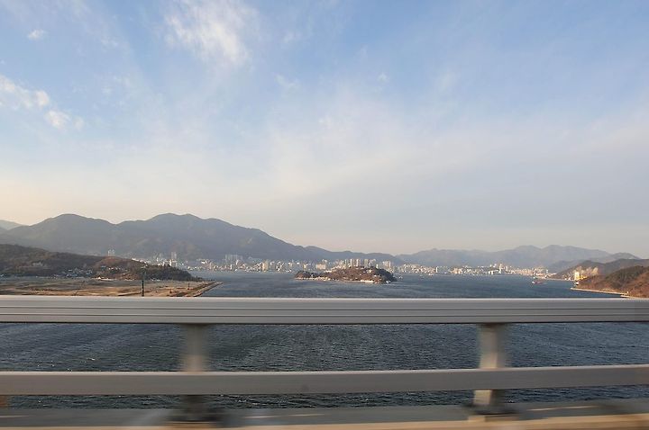 여행을 하다보면 차창 밖 풍경에 넋을 잃을 때가 종종 있다. 내가 운전을 할 때면 어쩔수 없지만, 두 손이 자유로울 때도, 순간을 놓치고아쉬워할 때가 많다. 그야말로 순발력과 타이밍이 중요하다. 모처럼 뒷좌석에 앉아 차창밖 풍경을 시도해 보았다. 거가대교를 보려고 부산을 떨며, 업데이트 하지 못한 네비 탓에,길을 물어 가며 도로를 달려갔다. 광안대교 위를 달리며 차창 밖 풍경에 감탄한다.처음 달려가는, 이 다리 위에서아름다움에 취해서 위험을 무릅쓰고카메라를 내밀었다.