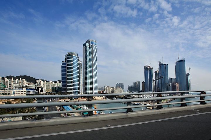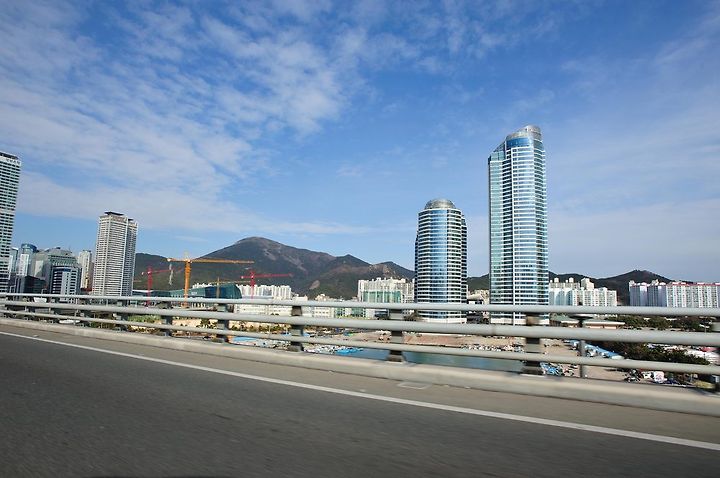 거가대교 가는 길에 부산 광안대교를 지난다. 지난 번 불이 났던황금색 오피스텔도 스치듯 빠르게 지나쳐 갔다.
