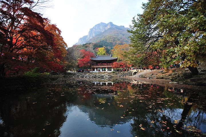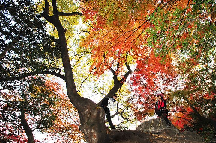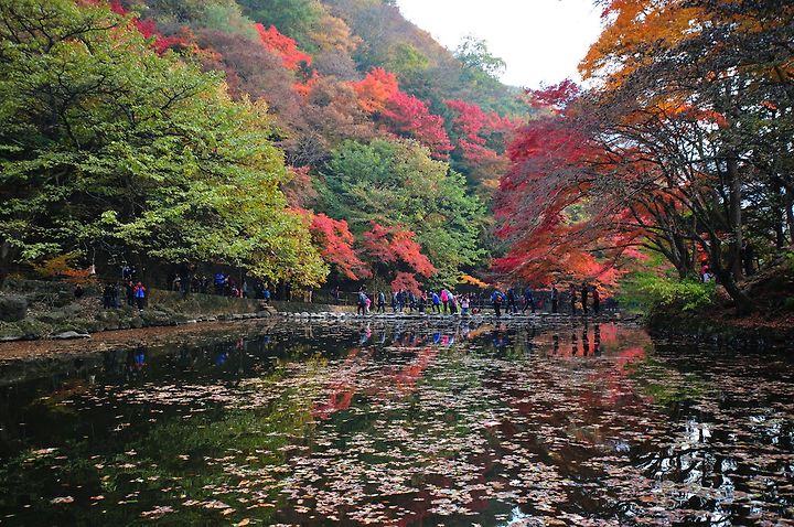 제 철에 백양사를 방문해서 단풍을 본 것이 처음이다. 사진에서 보면 새빨간 단풍에 나무와 사람과 자연이 하나로 물들어 버릴 것 같던데, 백양사에서 본 단풍은 전혀 그것이 아니었다. 물들기 시작한 것이 있는가 하면 새파란 단풍도 있고, 혹은 벌써 말라 오그라든 단풍도 있었다. 벚꽃처럼 일제히 온세상을 물들이는 단풍은 없는 것인지 모르겠다.