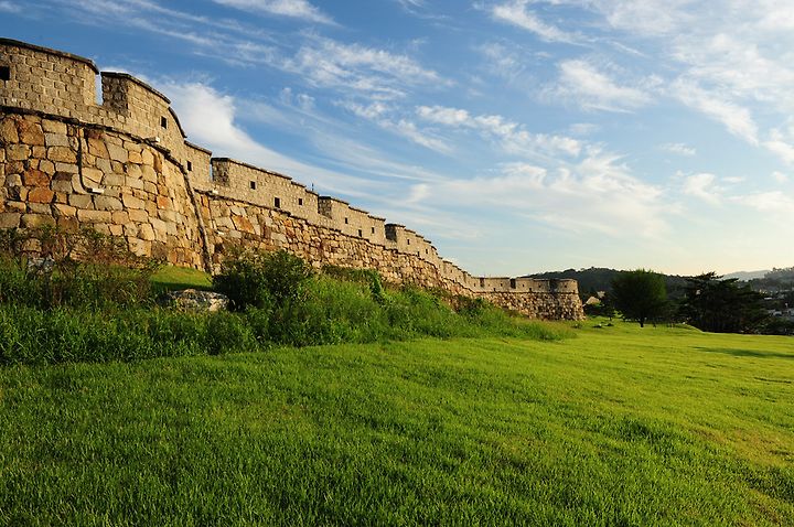 연무대 밖, 외성의 모습입니다. 멀리 화성장대(서장대)가 한 점 점으로 나타나는 것이 안타깝습니다.