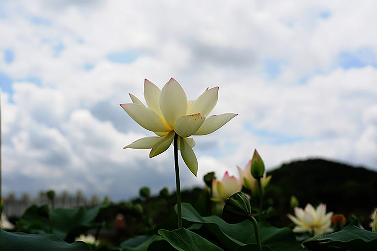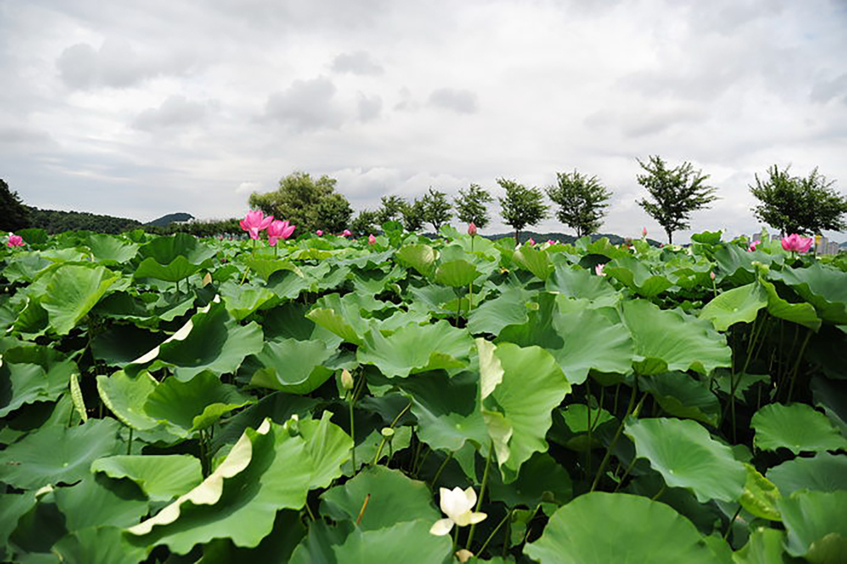 연꽃의 계절, 7월에 연꽃나라 관곡지에 다녀왔습니다. 초행이라 내비게이션 안내대로 가다가 두 번이나 길을 놓쳐 조금 지체했지만, 오락가락하는 날씨에 햇살이 변덕을 부리는 무더위였지만, 관곡지의 연밭은 장관이었습니다. 들어가는 입구부터 사람의 키만한 연잎과 꽃들이 온몸으로 하늘을 받치고 있었습니다. 급하게 연밭에 들어가 조심조심 연잎들을 헤치며 둑사이로 걷다가 이내 포기해 버렸습니다. 질척한 진흙땅을 감내하기 어려웠고, 울창한 연잎들을 헤치고 나갈 여력도 없었습니다. 연밭에서 나와 조금 걷자, 연 재배 시험장이 나타났습니다. 여러 종류의 연꽃을 감상하며, 즐거운 시간을 보냈는데, 내 생애 이처럼 많은 연잎과 꽃들을 본 적이 없었기에, 배고픈 줄도 모르고 연구경만으로도 포만감을 느꼈드랬습니다.