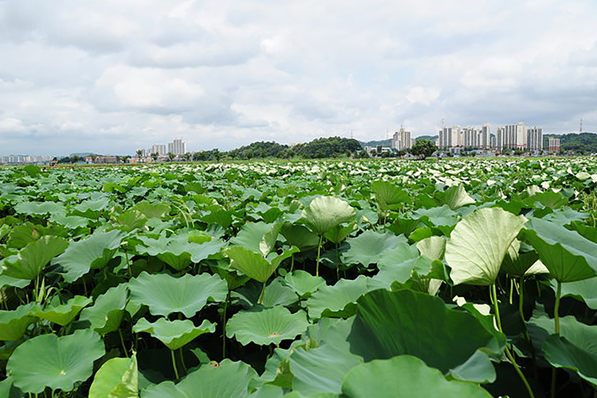 여기에 진공묘유(眞空妙有)를 하나 더 넣기도 한답니다. 연꽃의 씨앗은 오랜 시간이 흘러도 썩지 않고 있다가 조건이 주어지면 다시 싹이 틉니다. 우리가 자기도 모르게 만드는 원인과 결과에 대해서 생각하게 만들지요. 연꽃의 마지막 덕성은 자비심을 키워서 모든 이웃을 위해 사는 것이 바로 깨달음의 삶임을 말해 줍니다. 깨닫고 난 다음에 이웃에게 눈을 돌리는 것이 아니라 이웃에게 눈을 돌리는 바로 그 순간이 깨달음이란 이야기지요. 이러한 덕성을 지니고 있기에 연꽃은 불교의 상징으로 여겨져 온 것이지요. 부처님 가르침의 상징적인 연을 중생들이 섭취하는 것만 해도 불경스러울진대, 독성여부로 회의적 생각을 가져보았다는 것이 송구스러워졌습니다. 집에 돌아와 검색을 해보니, 매우 유익한 식품이었습니다. 연꽃이나 연잎을 말려 차로 달여 먹는데, 남자에겐 강정 작용을, 여성에겐 피부미용과 생리를 원활하게 해 준답니다. 연근은 열을 내려주고 마음을 안정시키는 진정작용(신경과민이나 스트레스, 우울증에도 도움)을 하며, 풍부한 무기질로 비타민C, 리놀레산, 식이섬유 등이 뼈의 생성과 촉진, 배설 촉진, 피부건강 유지 등에 효과가 좋답니다. 연은 우리에게 큰 가르침도 주고, 식품으로서도 중생들을 구원해 주는 고마운 존재임을, 관곡지 방문을 통해서 새삼 깨닫게 되었습니다.