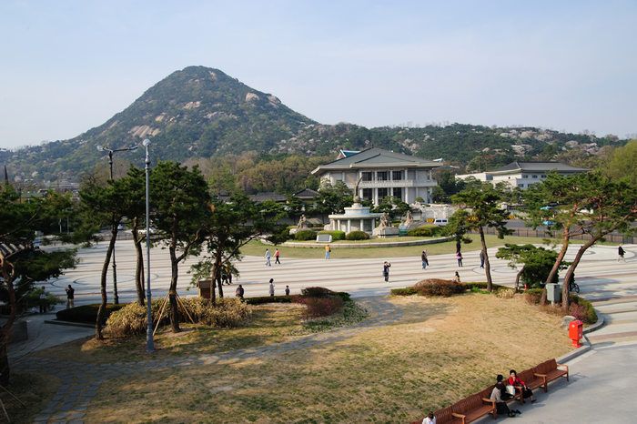 청와대 사랑채 2층에서 바라본 청와대, 옛날 같았으면 사진은커녕 출입도 못하게 했을 텐데...중국 관광객들이 많이 보였다.