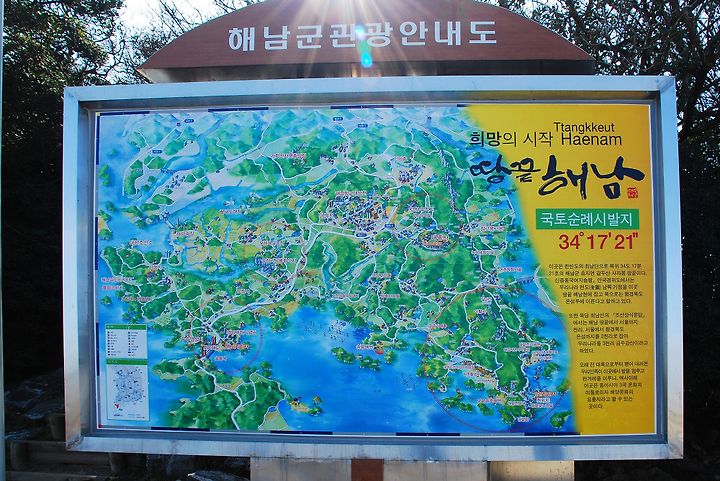 제일 먼저 눈에 띈 것이 아래 사진인데, 대형 판넬로 제작해서 뒷배경으로 사진을 찍을 수 있게 만들어 놓았다. 해남의 로고처럼 꽤 많이 본 그림이었다. 참으로 아름답다 생각하고 어디쯤 있을까 두리번거렸는데, 찾는 것이 그리 어렵지 않았다.