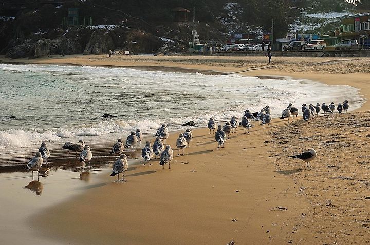 세찬 바람이 몰아치는 겨울 바다, 동해의 격랑이 바위와 해변을 삼킬 듯 밀려들며 부딪혀 물보라를 뿌려댔다. 갈매기들도 비행을 멈추고 저마다 햇볕을 향해 쉬고 있다. 바닷물에 젖은 깃털을 고르며 햇볕을 향해 따스한 햇살을 쬐고 있었다. 먹이를 찾아 부지런히 움직여야 할 갈매기들이 미동도 하지 않은 채 떼지어 해를 향해 줄지어 있는 모습들이 우수꽝스럽기도 하면서, 한편 애처러워 보이기도 했다. 춥고 배고플 때, 풍성하고 따스한 햇살만이라도 마음껏 쬘 수 있으니 그나마 다행한 일이긴 했지만...문득 나에게도 햇살 따스한 봄이 그리워졌다.